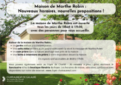 La ferme Robin, où vécut Marthe, est située sur la commune de Châteauneuf-de-Galaure, dans la Drôme (France). Elle se trouve à 2 kilomètres du Foyer de Charité.